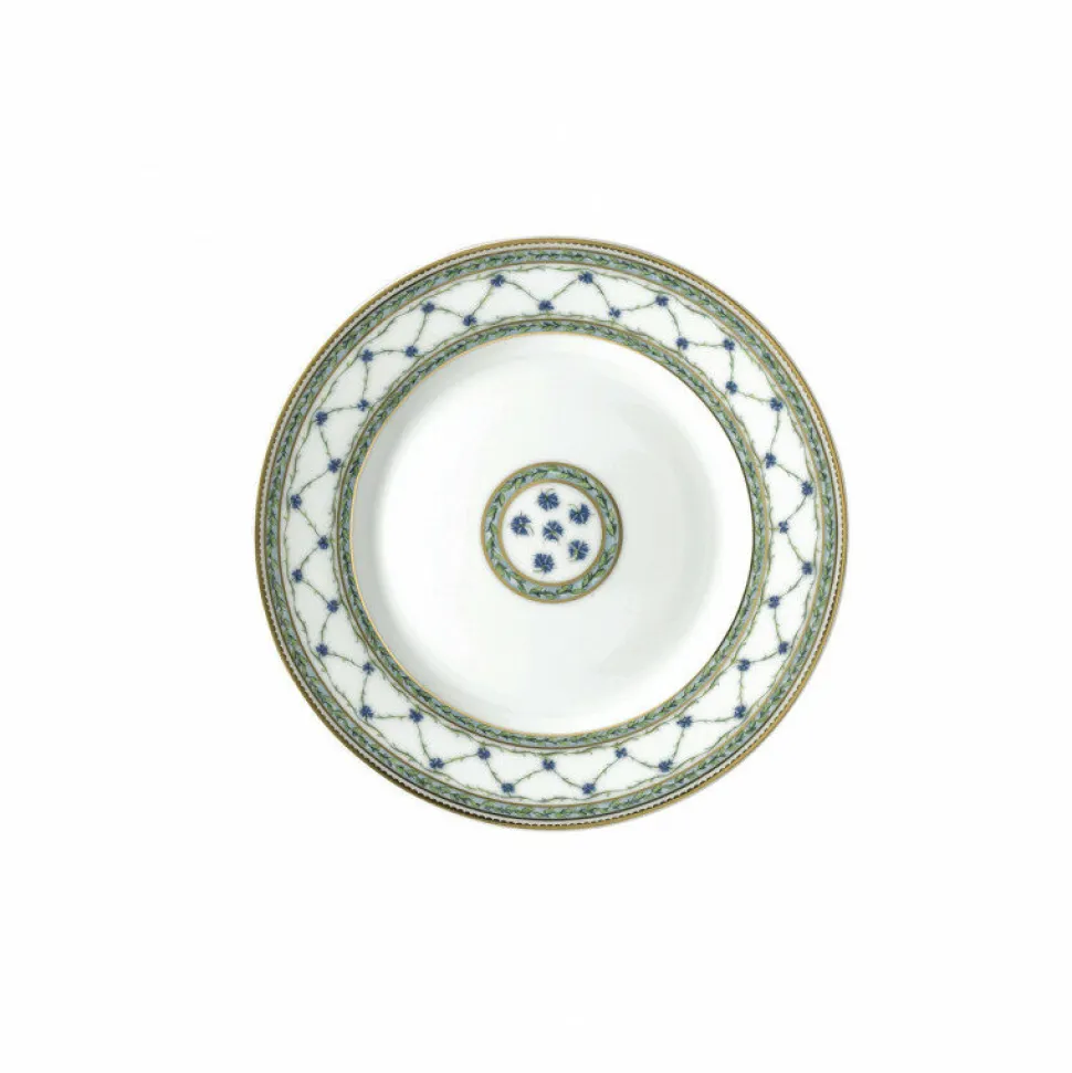 Compacte et précieuse, cette assiette plate de 22 cm conjugue élégance historique et raffinement contemporain. Parée du somptueux décor végétal de la collection Allée du Roy, elle déploie en bordure un croisillon orné de délicats barbeaux bleus et de feuillages stylisés, ponctué de lauriers et de filets d’or finement appliqués à la main. Son format est idéal pour les entrées, petites compositions ou desserts servis avec distinction.