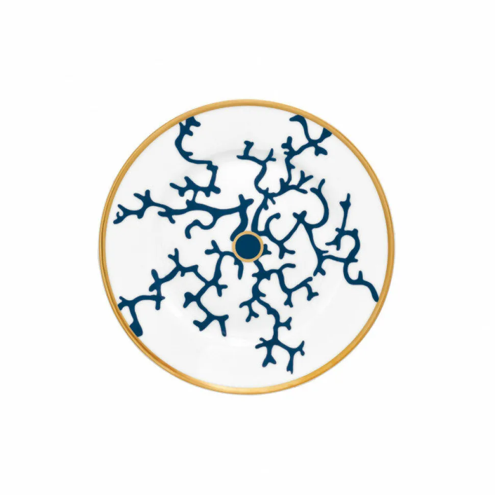 Évoquant les mystères des profondeurs marines, cette assiette plate à aile de 19 cm séduit par son graphisme audacieux et la vivacité de son décor corallien bleu intense, subtilement rehaussé d’un filet or.