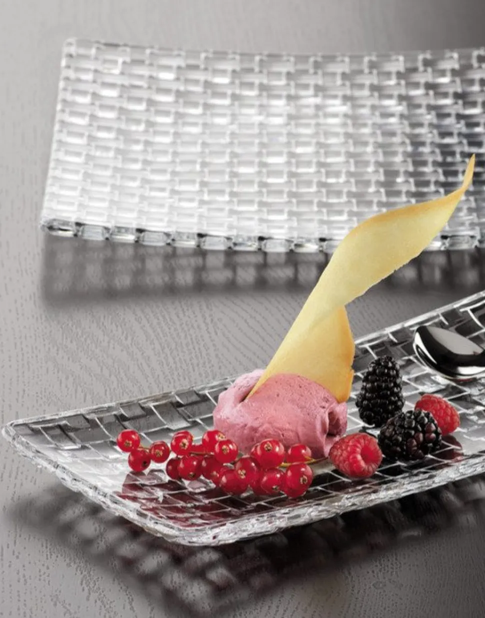 - Assiette en cristal rectangulaire, de la maison Nachtmann.