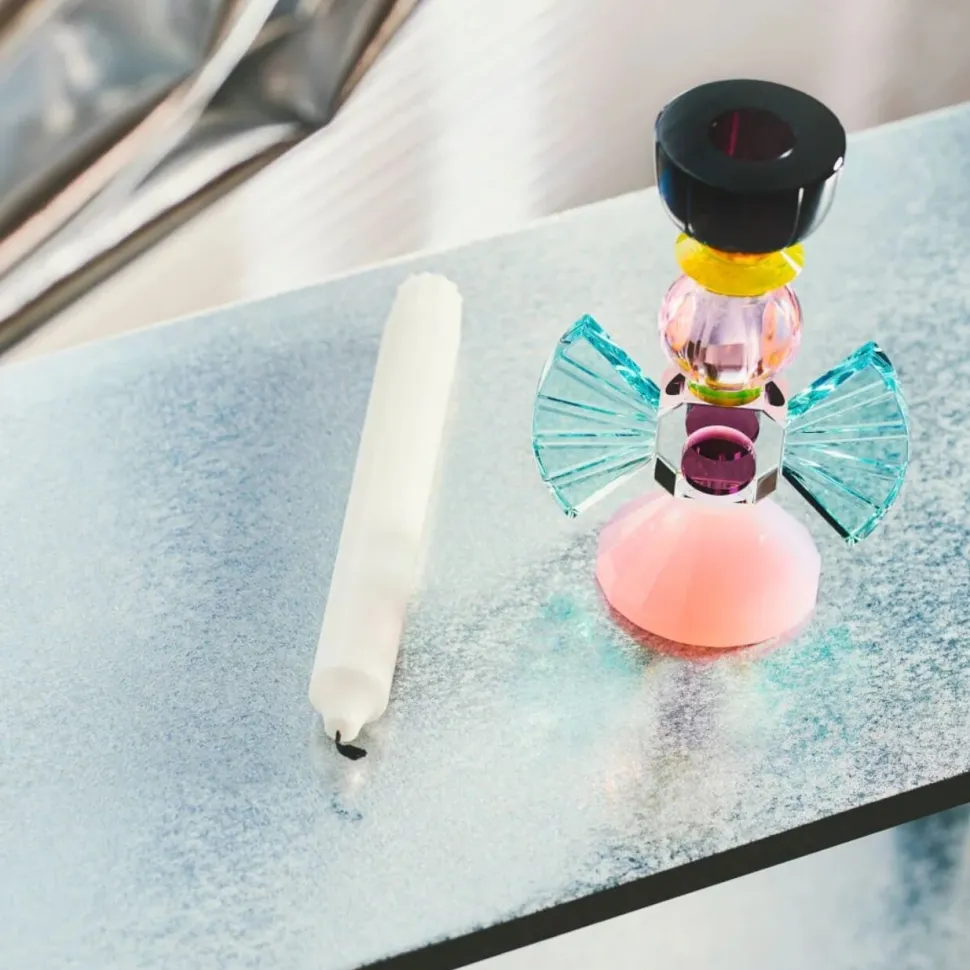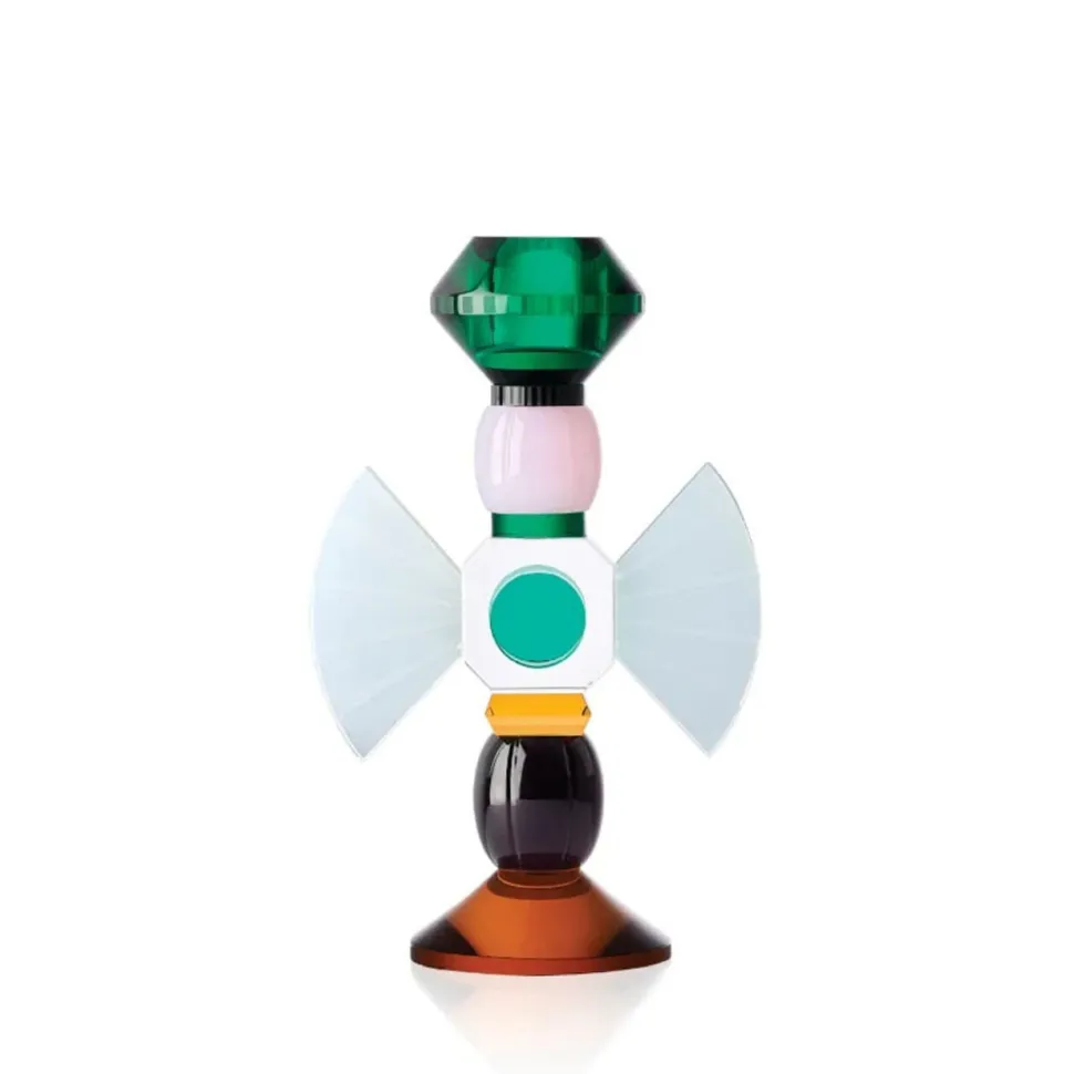 Le bougeoir Carmina offre un équilibre saisissant entre structure et luminosité. Ses ailes en cristal opale s’élèvent d’une base ambrée, tandis qu’un cercle de cristal vert flottant, harmonieusement intégré au cristal clair, ajoute profondeur et mystère. Agrémenté d’un bougeoir émeraude, ce bijou incarne à la fois force et élégance, un ajout raffiné et artistique à tout espace.