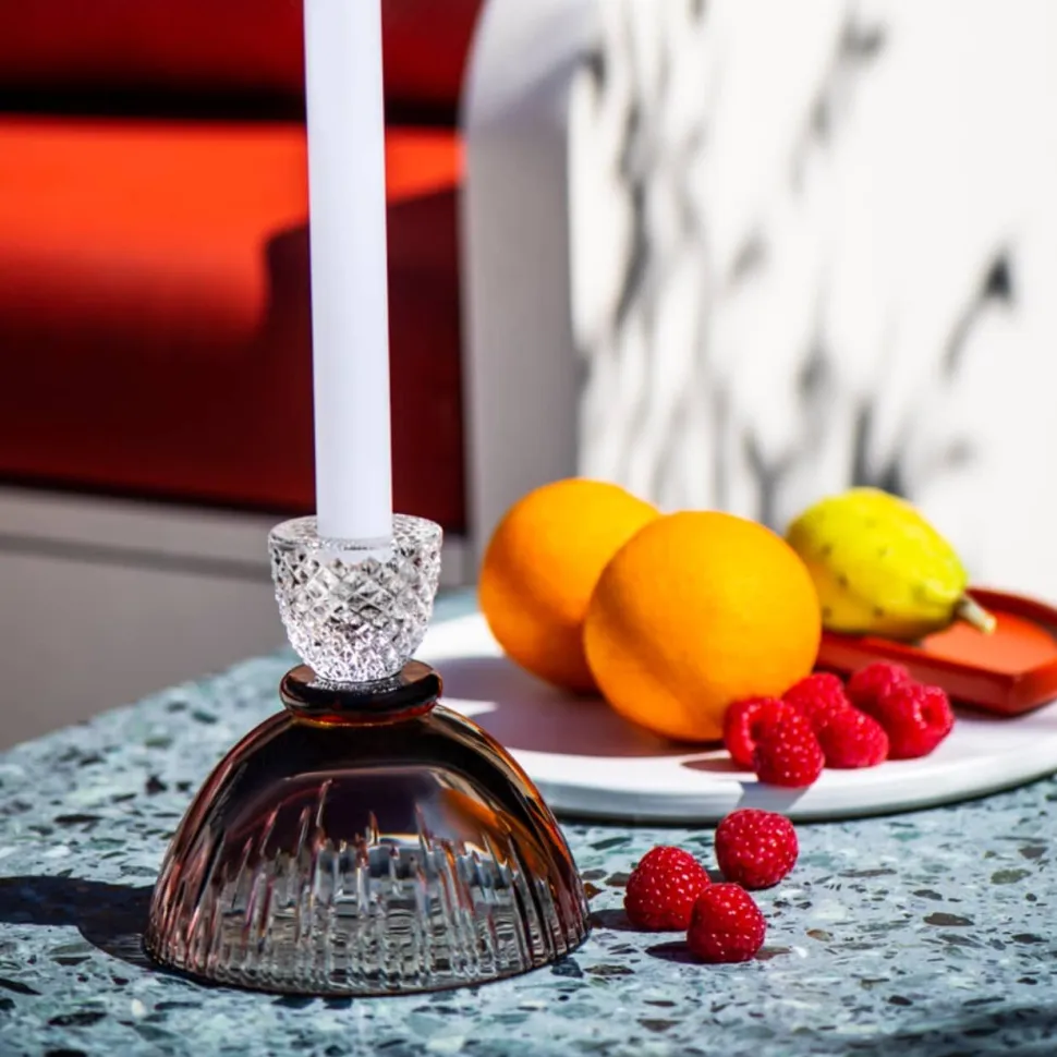 Ce bougeoir pour le moins original se compose de deux paraisons de verre. À l’envers ou à l’endroit, il n’y a pas de sens, laissez place à votre imagination et servez-vous en comme bougeoir et photophore.