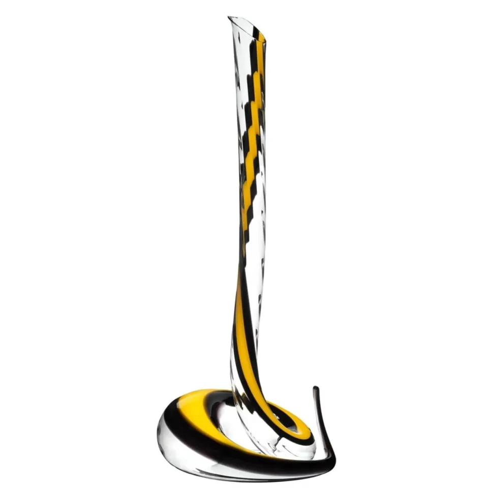 Son design sinueux, évoquant la silhouette ondoyante d’un serpent, offre au vin une double décantation fluide et spectaculaire, favorisant une oxygénation optimale.