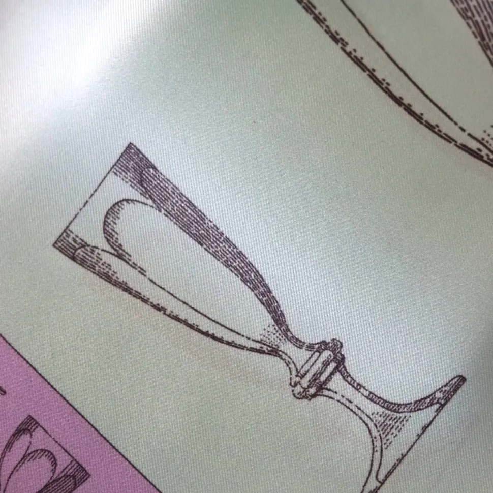 Les croquis du célèbre motif Harcourt 1841 sur un carré de soie. Le foulard se porte en bandeau ou autour du cou, apportant élégance et dynamisme à une tenue.