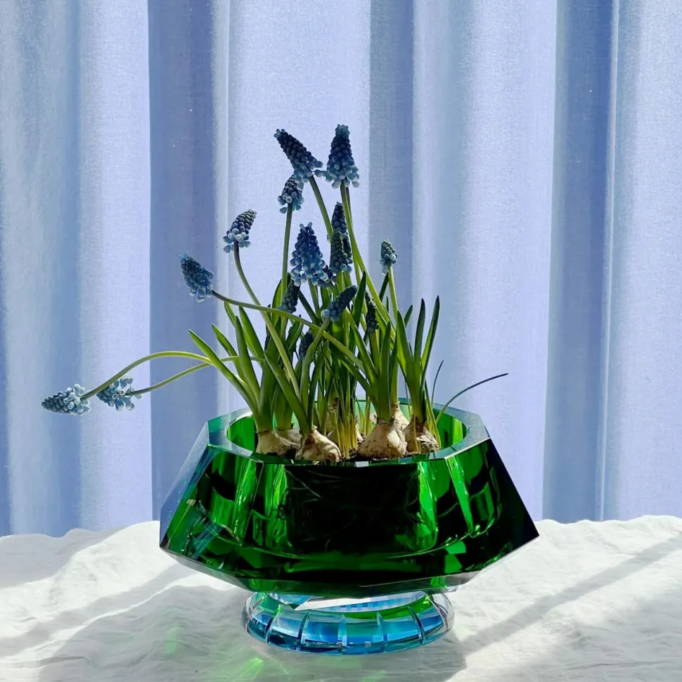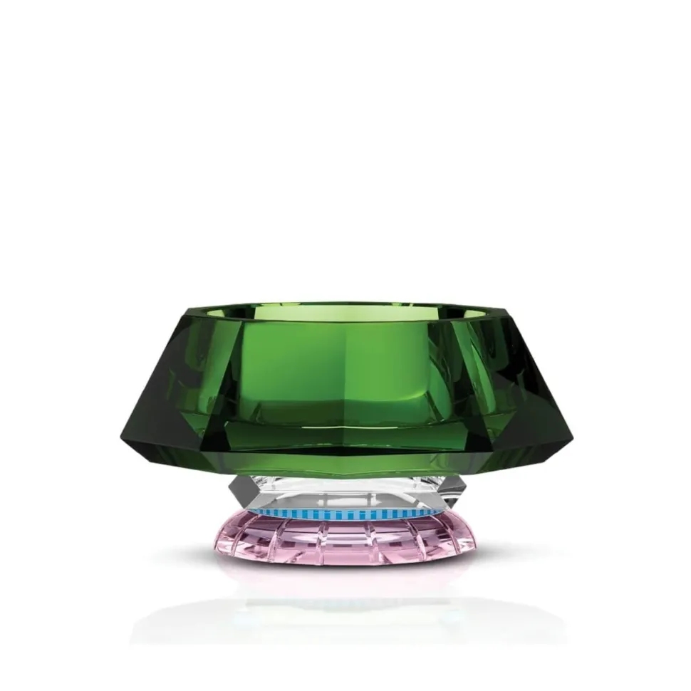 Le bol Lizzie est une étude de contraste et d’équilibre. Un cristal vert profond rencontre une base délicate en cristal rose, le tout relié par un cristal clair aux fines touches azur. Ce détail subtil renforce l’impression d’apesanteur, donnant au bol une impression de suspension. Jeu raffiné de couleurs et de formes, le bol Lizzie est à la fois une pièce fonctionnelle et un élément visuel saisissant.