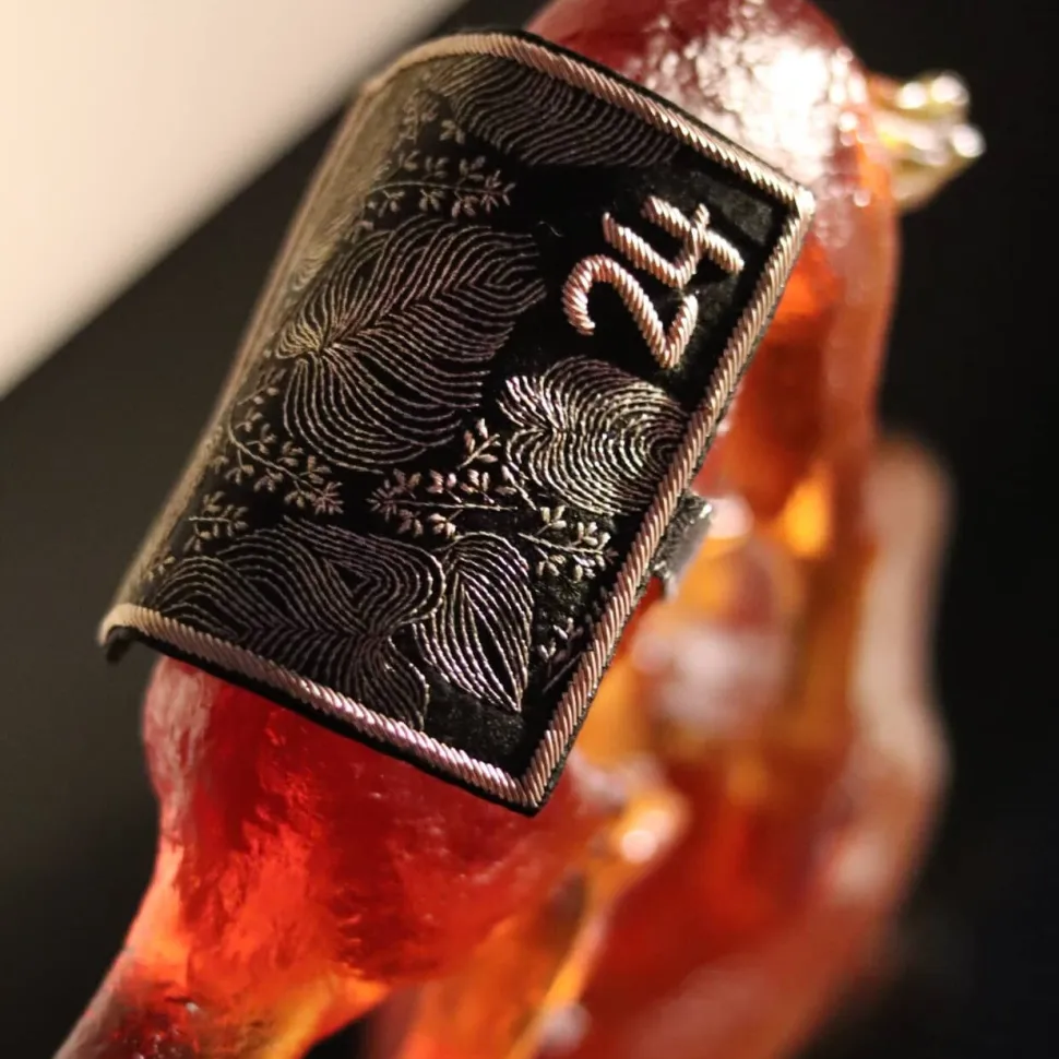 Le dromadaire s’habille d’un tapis sur-mesure brodé à la main de fils précieux, réalisé à Paris par l’atelier Zardosi, Chaque dromadaire a son tapis avec un numéro unique brodé.