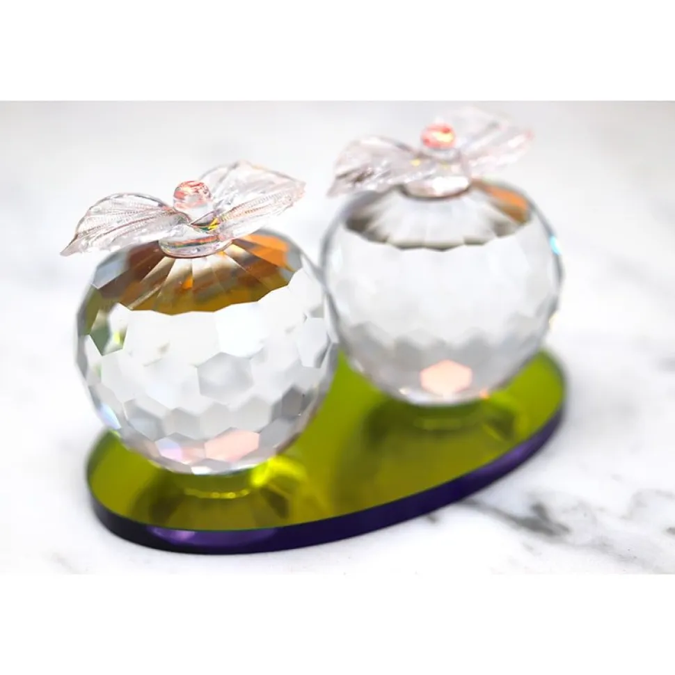 - Duo de pomme en cristal, taillé à facette
