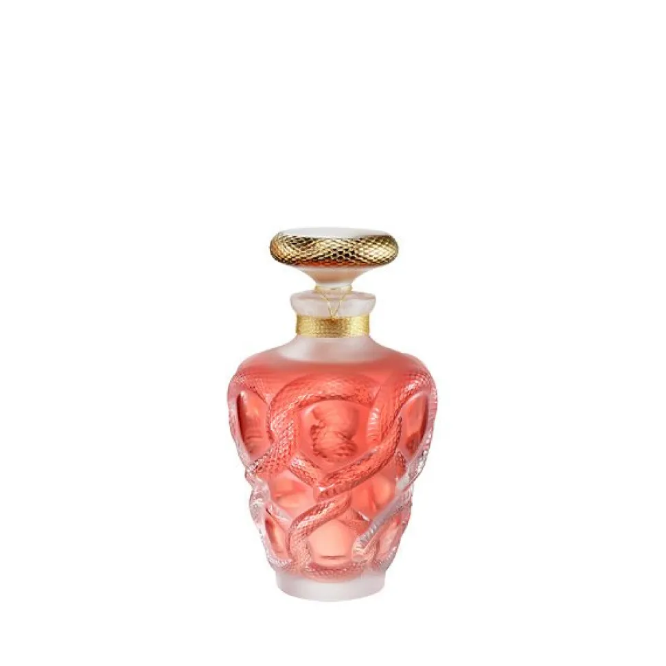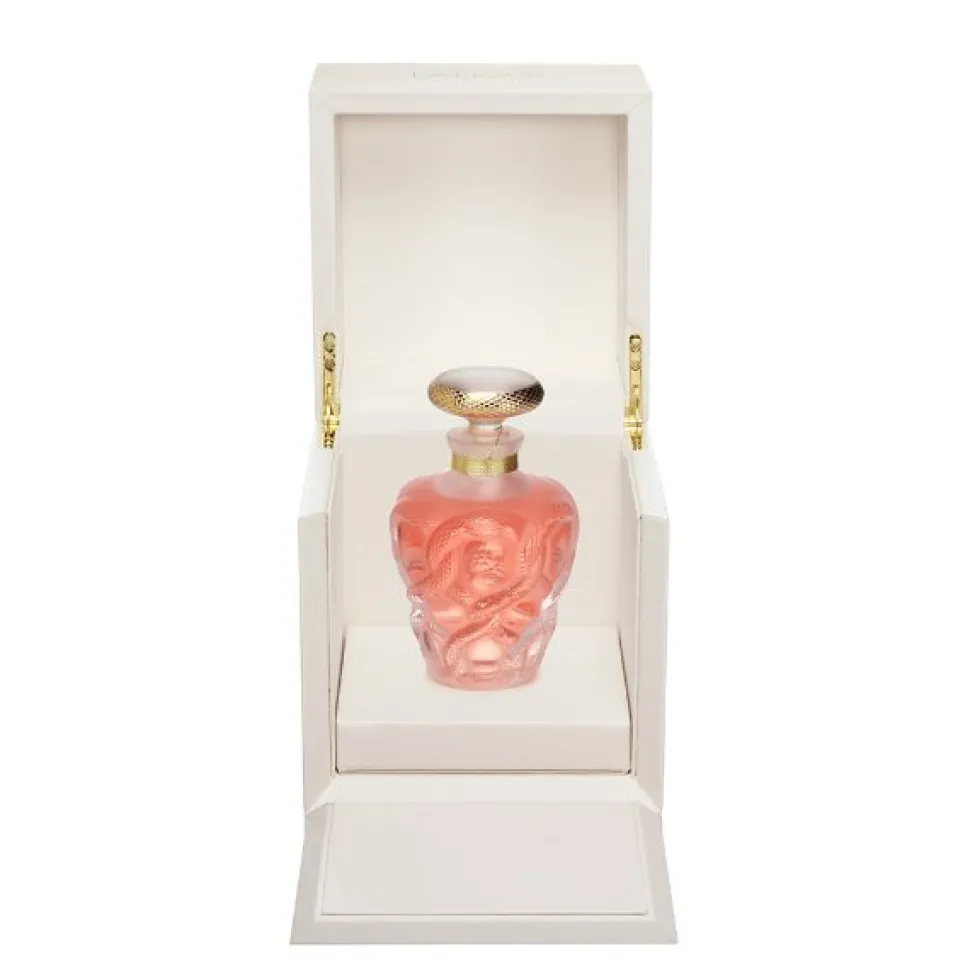 Comme chaque année, Lalique édite son édition de prestige destinée aux collectionneurs. En cristal clair, une série de serpent est sculptée dans la masse, avec un bouchon doré rappelant la peau du reptile. À l’intérieur, Lalique de Lalique, une fragrance florale, féminine et radieuse née d’une envolée de fleurs qui se prolonge par des notes légèrement fruitées, vanillées et musquées. Découvrez le parfum emblématique de Lalique à l’intérieur.