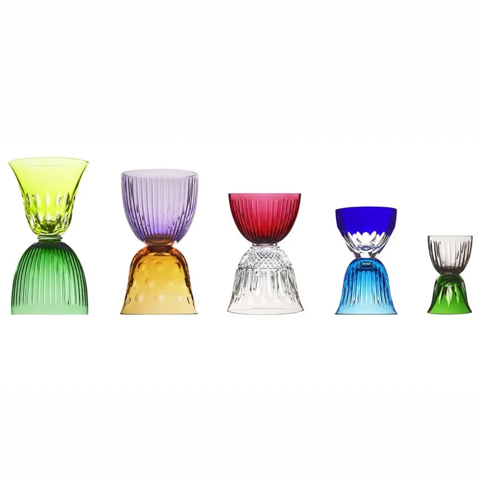 Seulement deux éléments, présentant toute la technique du cristallier Saint-Louis : un cristal doublé couleur et taillé main, que demander de plus ? Voici de quoi apporter une touche de couleur et de fantaisie à votre quotidien.