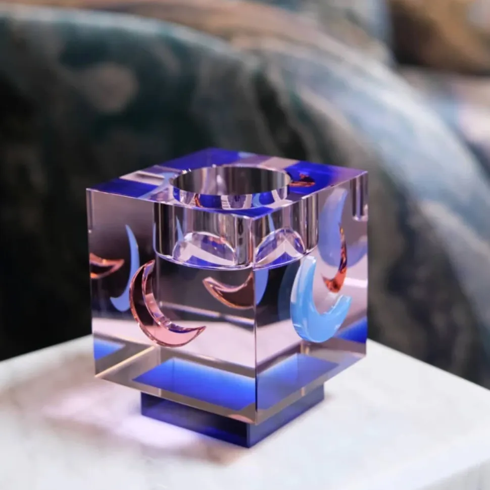 Le photophore Lea Moon est composé de cristal transparent et de lunes colorées. Ce photophore évoque l’émotion ressentie en contemplant le ciel nocturne, empli d’obscurité mystérieuse et d’une lune brillante. Il illuminera votre soirée, comme la lune illumine le ciel nocturne.