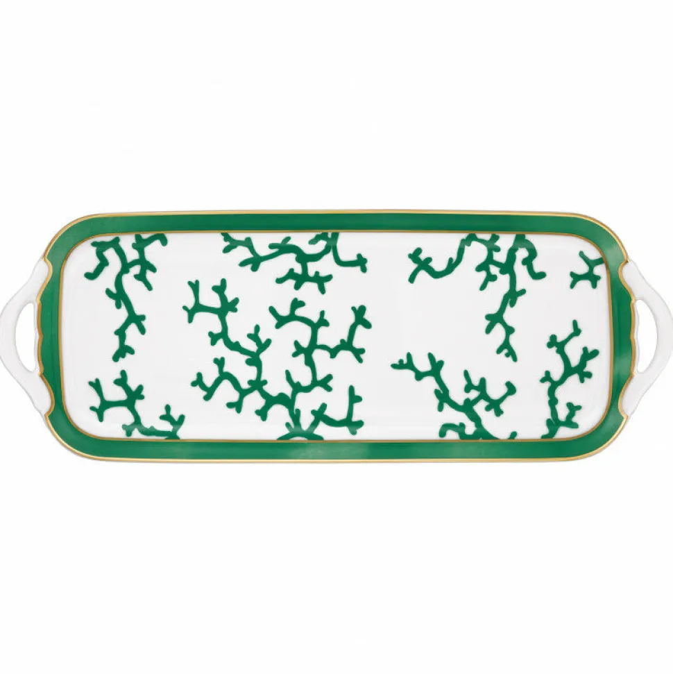 Sublimez vos instants gourmands avec ce plat à cake en porcelaine de Limoges signé Raynaud. Longiligne et raffiné, il met en scène avec éclat le célèbre motif de corail stylisé dans une vibrante teinte. Ce décor évocateur, encadré d’un liseré doré et d’un large filet vert intense, transforme ce plat en une pièce forte de votre service. Idéal pour servir cakes sucrés, bouchées salées ou douceurs exotiques, il conjugue esthétisme audacieux et fonctionnalité contemporaine.