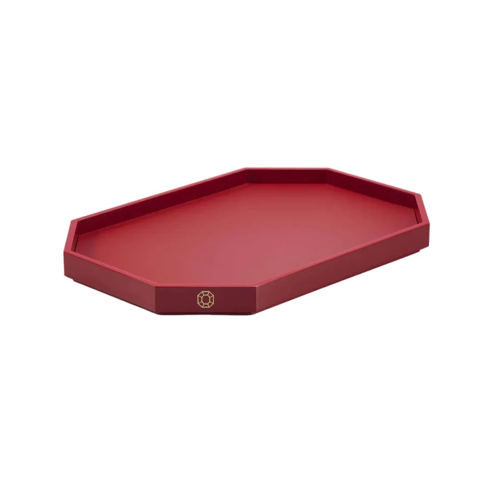 Le plateau Octogone est une création laquée disponible en trois tailles. Inspirée par la pampille octogonale rouge, signature emblématique de Baccarat, une série d’accessoires en laque raffinée vient agrandir la collection Octogone. Le plateau est méticuleusement confectionné à la main grâce à un savoir-faire ancestral. Sa surface brillante capte la lumière et met en valeur les pièces en cristal de la Maison.
