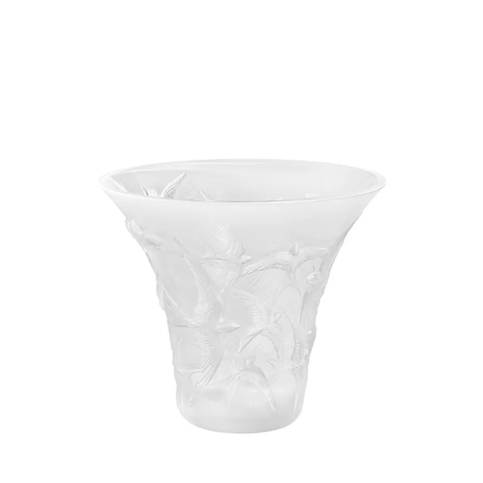 Avec admiration et respect pour cet immense artiste, Lalique réinterprète la figure de l’hirondelle, récurrente dans l’oeuvre du Maître, annonciatrice du printemps, symbole de bonheur et de liberté. Sculptées dans le cristal satiné repoli, emblématique de Lalique, les hirondelles se juxtaposent dans un jeu de répétition graphique.