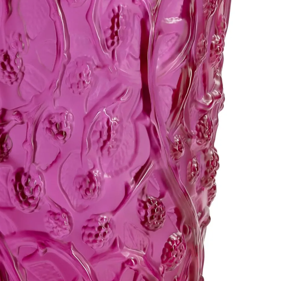 Le vase Mûres présente une abondance de baies jalousement protégées par un entrelacs de ronces. Une invitation à une promenade onirique dans les sous- bois. Le cristal satiné repoli illumine le relief finement ciselé de cette pièce maîtresse de décoration, déclinée en cristal fuchsia ou noir, en édition numérotée limitée à 188 exemplaires de chaque teinte.