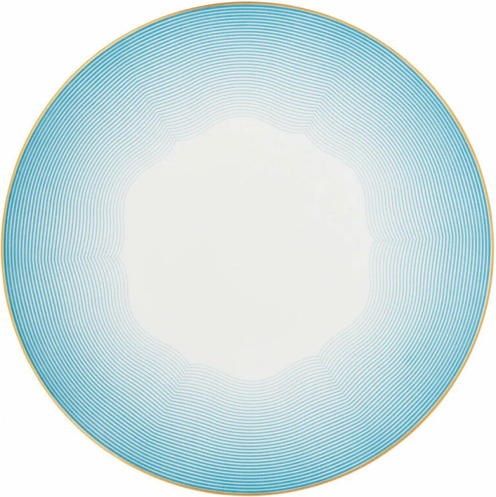 Sublimez vos tables avec l’assiette plate Aura de Raynaud, une pièce d’exception en porcelaine de Limoges. Son décor graphique, inspiré des modèles festonnés du XVIIIᵉ siècle, révèle une composition de traits bleus intenses qui s’affinent vers le centre, dessinant des courbes légères et aériennes.