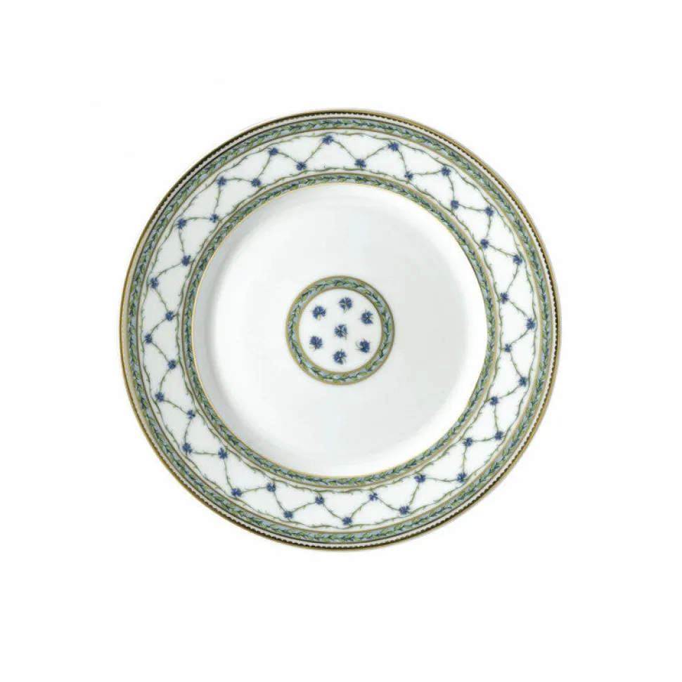 Compacte et précieuse, cette assiette plate de 22 cm conjugue élégance historique et raffinement contemporain. Parée du somptueux décor végétal de la collection Allée du Roy, elle déploie en bordure un croisillon orné de délicats barbeaux bleus et de feuillages stylisés, ponctué de lauriers et de filets d’or finement appliqués à la main. Son format est idéal pour les entrées, petites compositions ou desserts servis avec distinction.