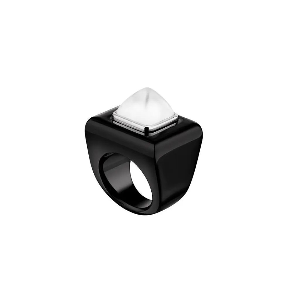 - Bague cristal noir brillant, cristal incolore satiné