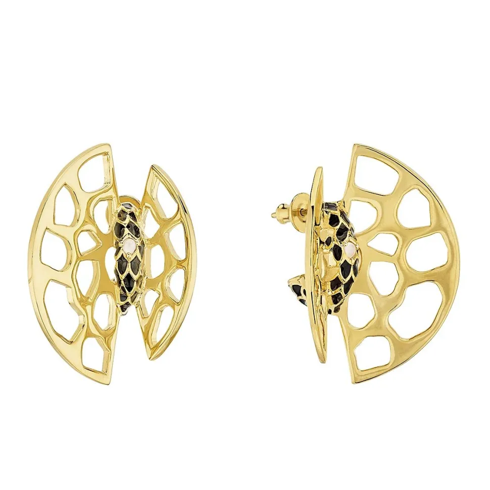 Pour la collection automne hiver 2018, Lalique poursuit sa collaboration avec l’Opéra national de Paris pour rendre hommage à Orphée et Eurydice, un célèbre amour de la mythologie grecque. Ces boucles d’oreilles étonnantes de par leur forme, leur structure, ainsi que les matériaux employés interprètent le motif du serpent, cher à René Lalique. Quelques motifs en cristal clair satiné-repoli sont visibles dans les écailles du serpent, ainsi qu’une laque noire, un procédé maîtrisé à la perfection par Lalique.