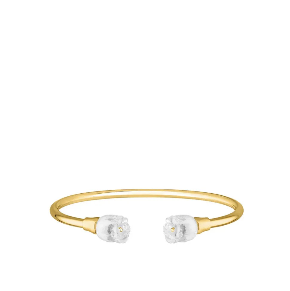 Ces nouveaux bracelets flexibles jouent les duos de motifs sur un jonc ouvert en argent. A porter seuls ou à associer, les motifs Cabochon, Aréthuse et Muguet se glissent et s’accumulent sur le poignet en toute simplicité, grâce à leur parfaite flexibilité. Avec ses clochettes iconiques en cristal incolore brillant au cœur de poudre de cristal blanc, muguet est un best-seller.