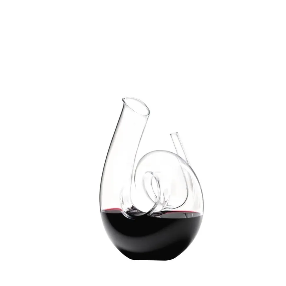 Avec sa silhouette en spirale élégamment ondoyante, le décanteur Curly de RIEDEL apporte une touche de fantaisie maîtrisée à l’univers de la dégustation.
