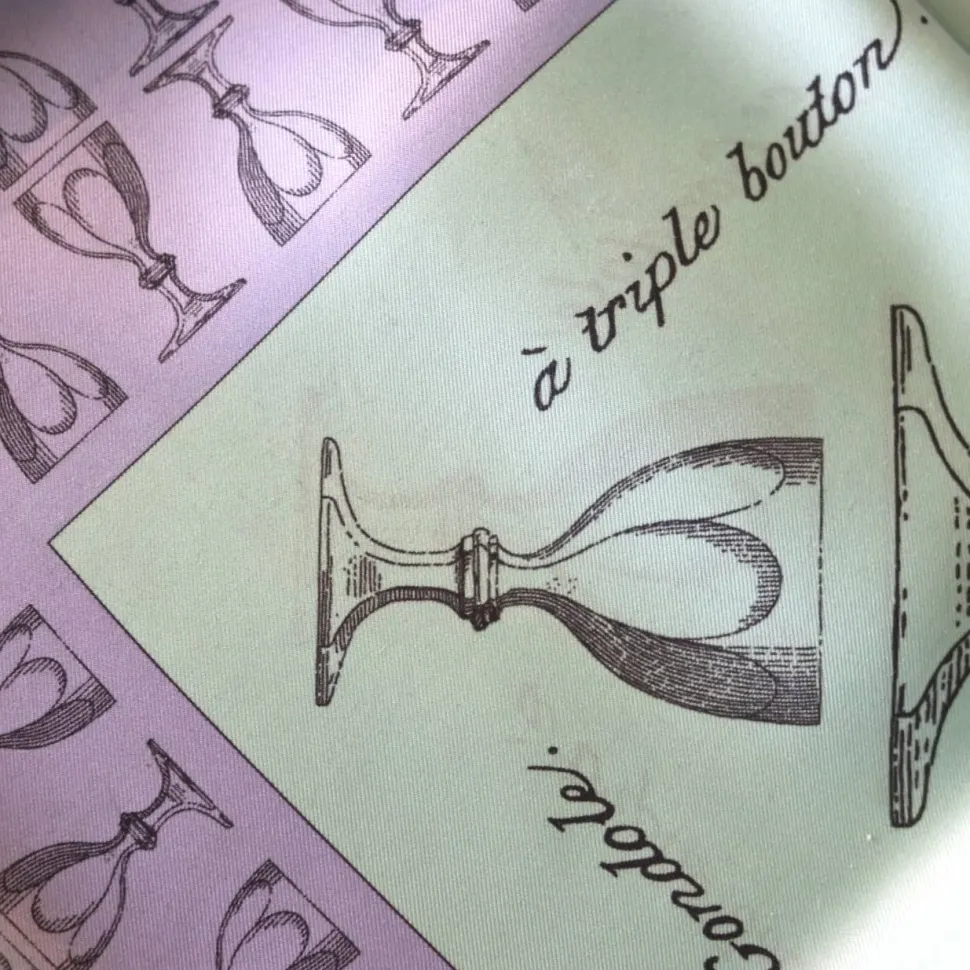 Les croquis du célèbre motif Harcourt 1841 sur un carré de soie. Le foulard se porte en bandeau ou autour du cou, apportant élégance et dynamisme à une tenue.