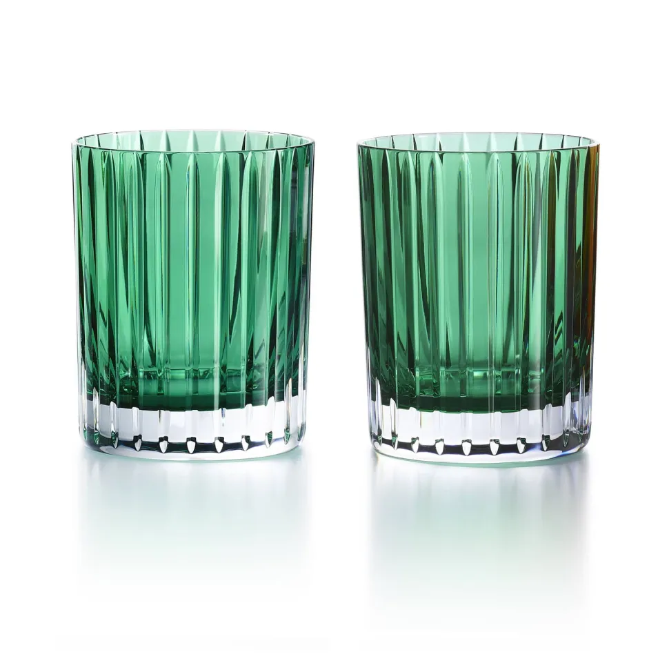 Créé par Savinel & Rozé, un motif linéaire qui souligne l’élan vertical du gobelet. Gobelets en cristal doublé, d’un vert profond et lumineux, emblématique de Baccarat… et passionnément aimé.