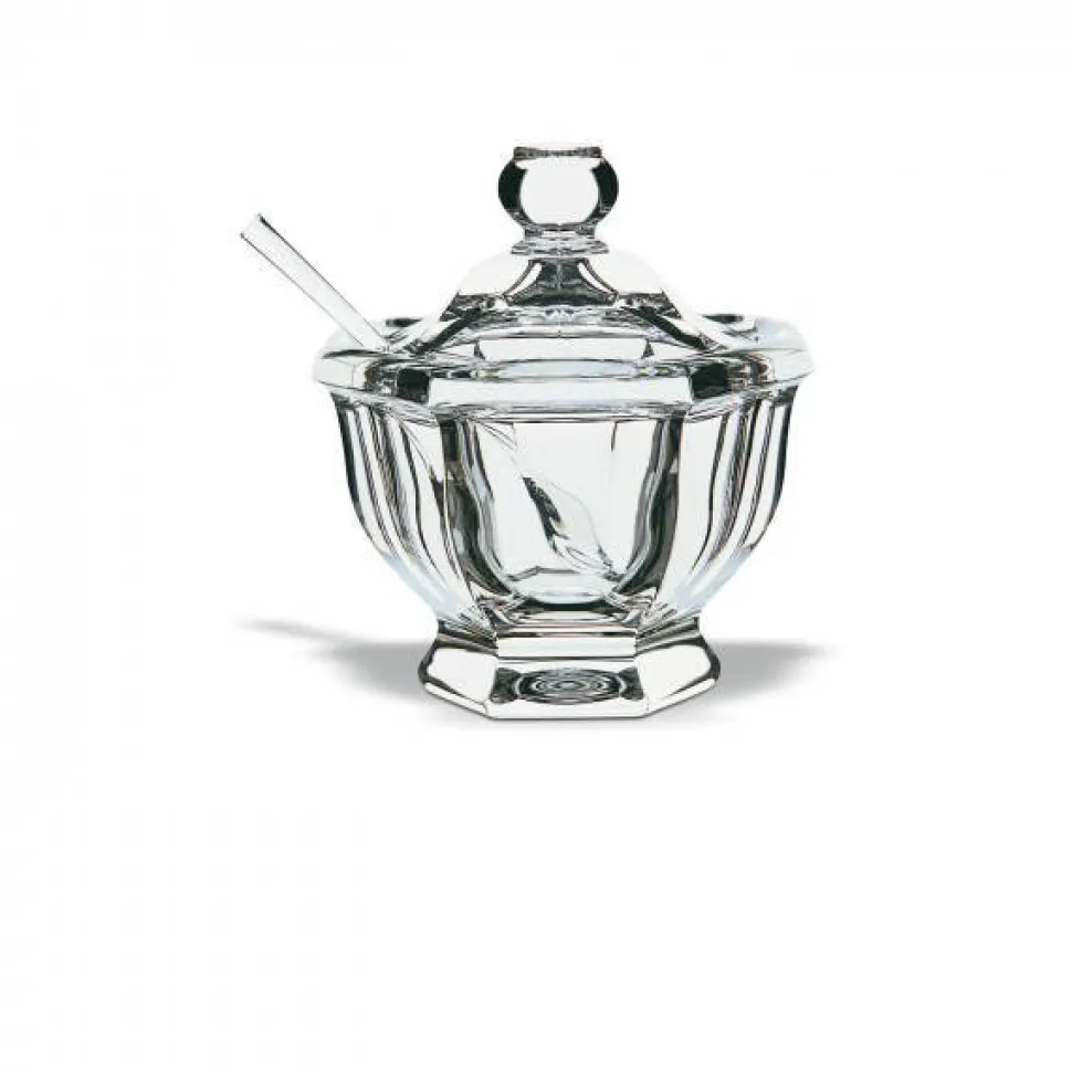Un superbe accessoire de table, pour toute occasion. Ce confiturier est vendu avec sa cuillère de service en cristal clair Baccarat. Le confiturier reprend les codes du service Harcourt, une pièce haut de gamme.