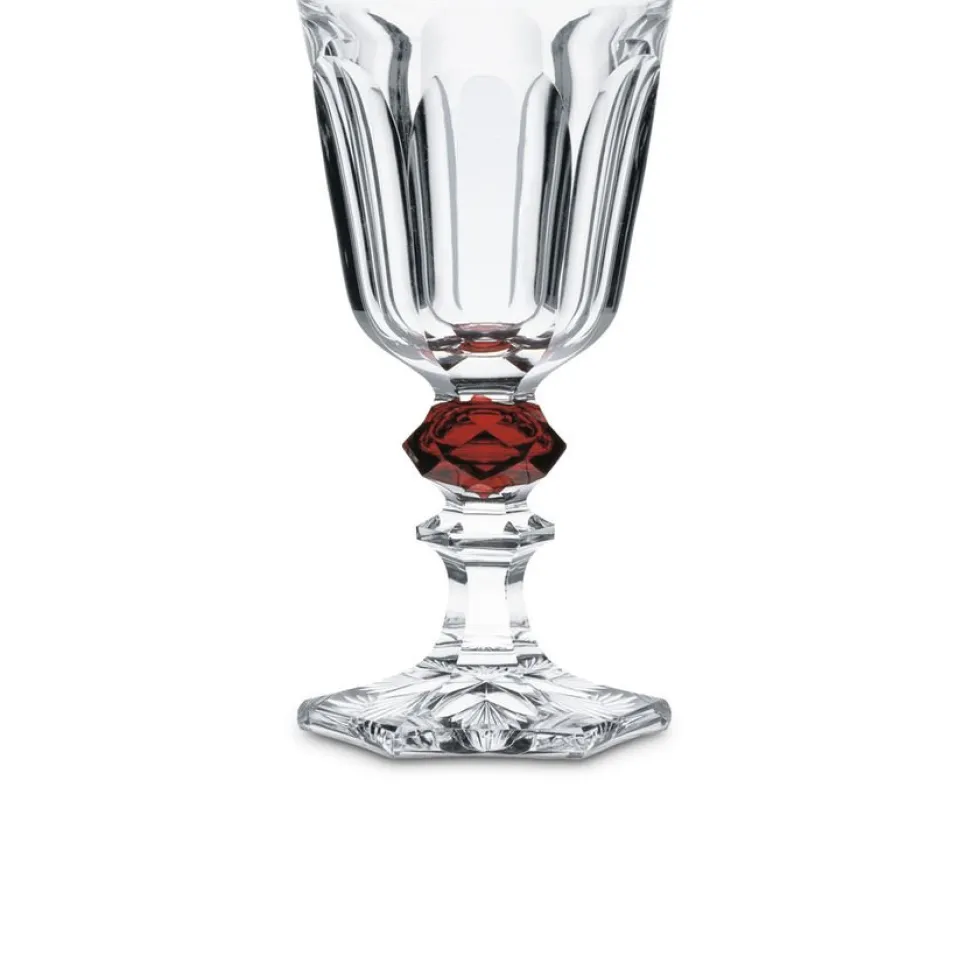 En hommage au calice d’apparat commandé par le roi Louis-Philippe en 1841, Baccarat réédite le verre royal à six facettes, paré d’un bouton de cristal rouge. Découvrir le Service Harcourt.