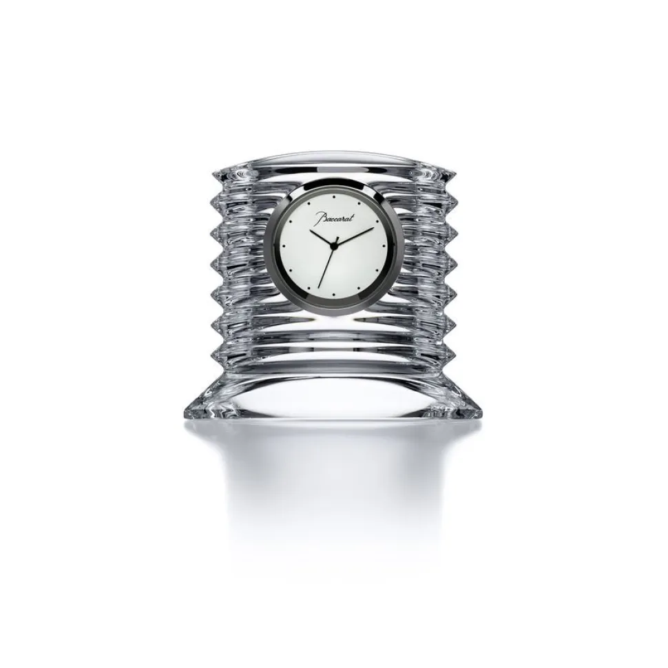 Accessoire raffiné en cristal clair travaillé à la main, la pendulette Lalande embellit la maison ou le bureau de sa transparence et de l’élégante symétrie d’une silhouette ondoyante.