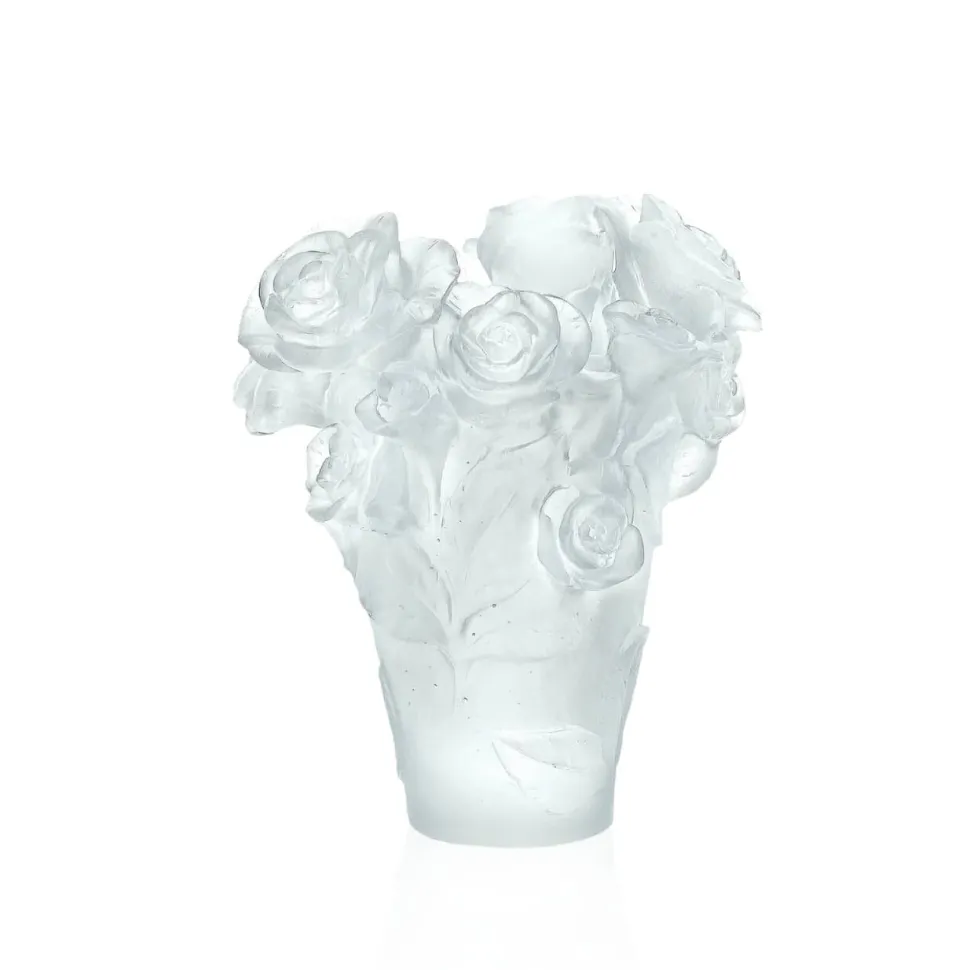 Le vase rose est emblématique de la maison Daum, une oeuvre d’art unique qui traverse les générations, sublimée grâce au processus de la cire perdu, les détails du vase sont époustouflants. L’art est le luxe ultime. Découvrir la collection Roses Passion Daum.